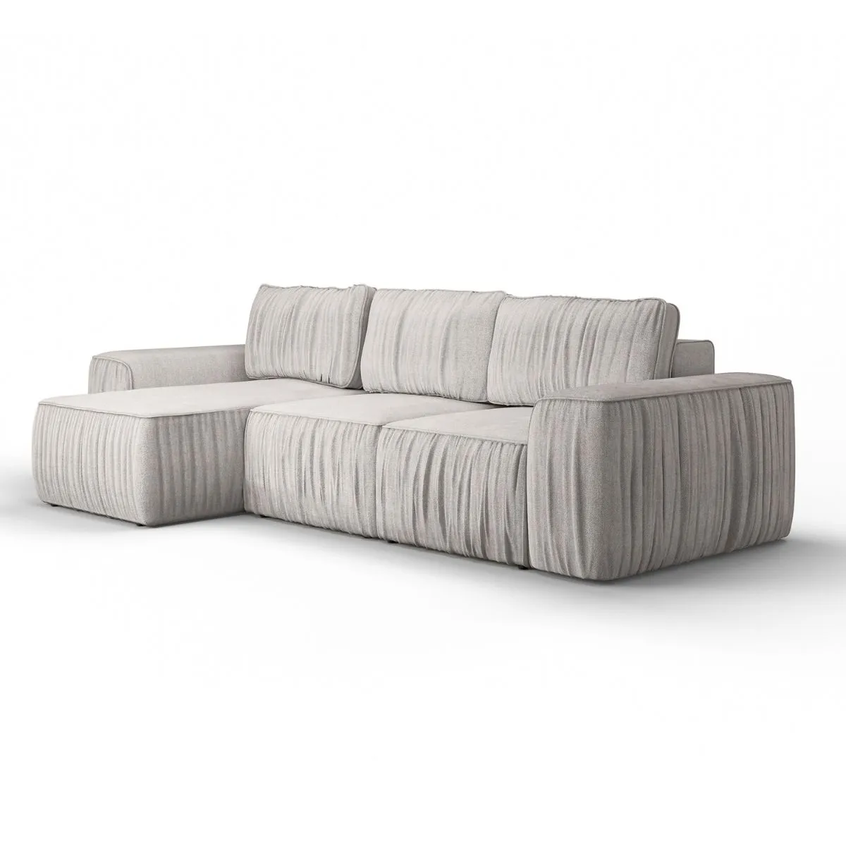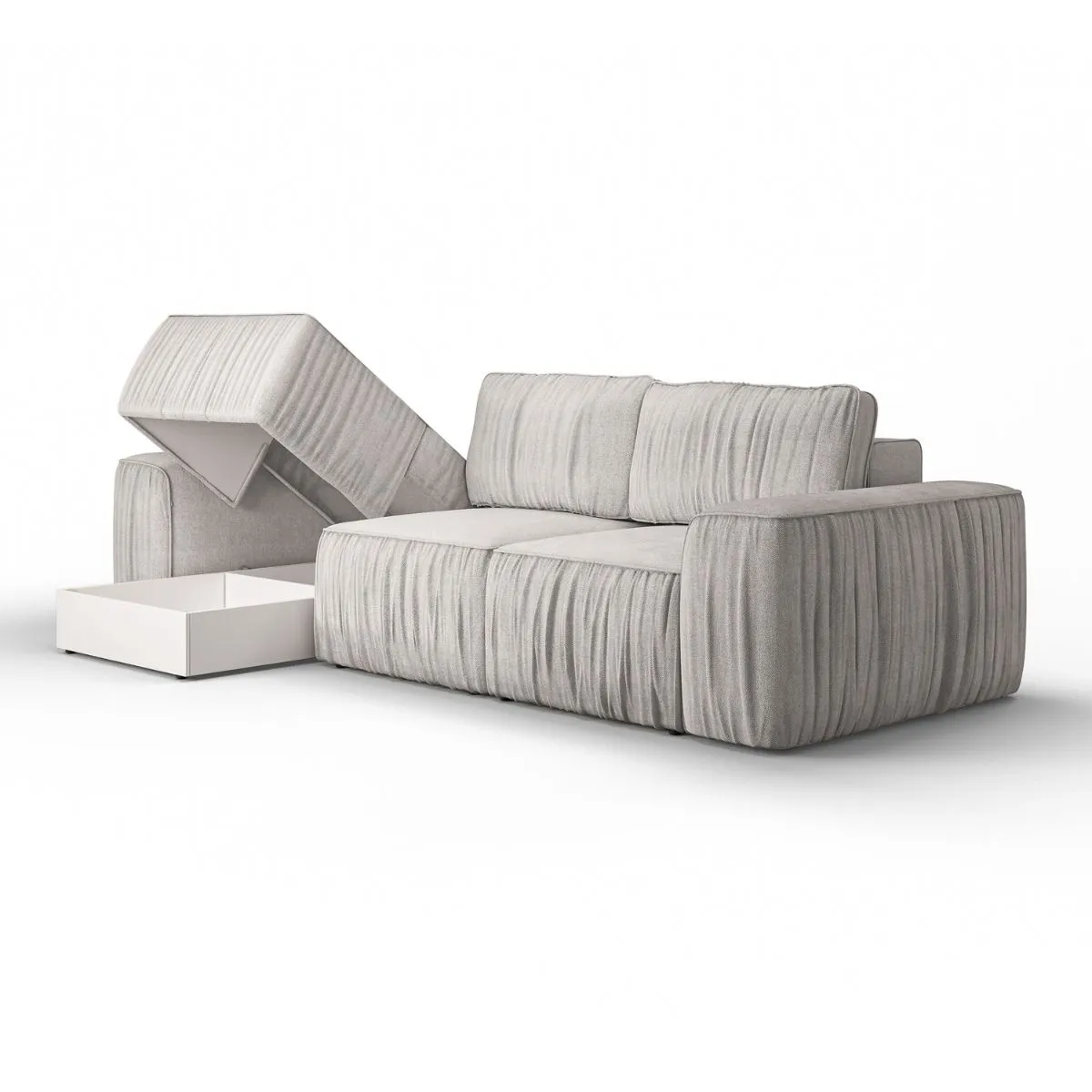 Tkaniny premium, w tym elegancki welur mat, modny boucle oraz strukturalne o ciekawej fakturze, są nie tylko przyjemne w dotyku, ale również trwałe i łatwe w utrzymaniu. Szeroka gama kolorystyczna – beżowa, biała, szara, kremowa czy grafitowa – pozwala dopasować narożnik do Twojego wnętrza. Dostępny w układzie lewym i prawym, Stone to idealny wybór do salonu, łączący styl, wygodę i funkcjonalność.